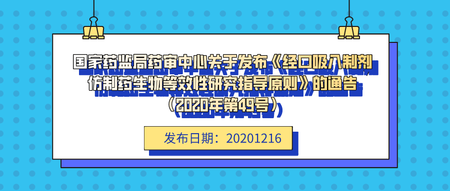 國(guó)家藥監(jiān)局藥審中心關(guān)于發(fā)布《經(jīng)口吸入制...